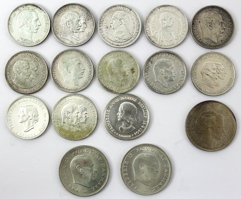 Lot bestående af 13 stk. 2 kr sølv, diverse årstal samt 5 kr 1967, -68 og 1972