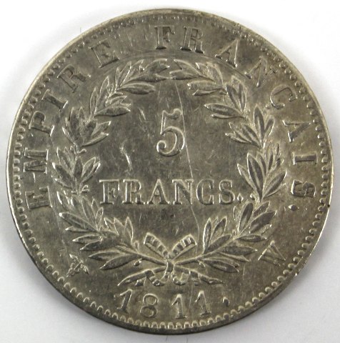 Frankrig, Napoleon I, 5 franc sølv 1811 - KM 694.16