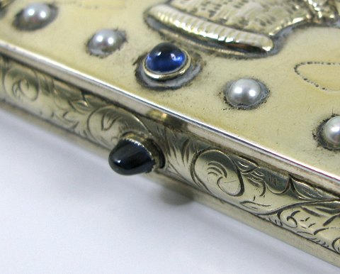 Tysk pragttabatiere af sterling sølv med rubiner, safirer og perler