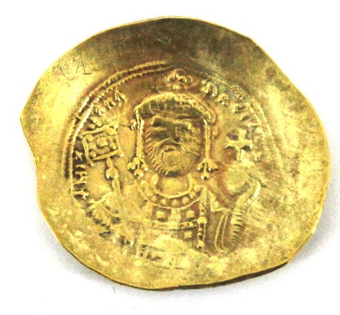 Histamenon, Konstantinopel. Kristusbuste / Kaiser med krone, loros und labarum. Friedberg #264. 30 x 27 mm., 4,3 gr.