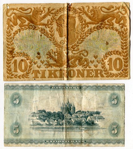 5 kr 1960 C3 (0J) erstatningsseddel og 10 kr 1935 G8