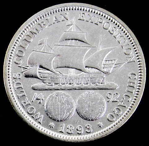 Half dollar, præget i anledning af Verdens Udstillingen i Chicago 1893.