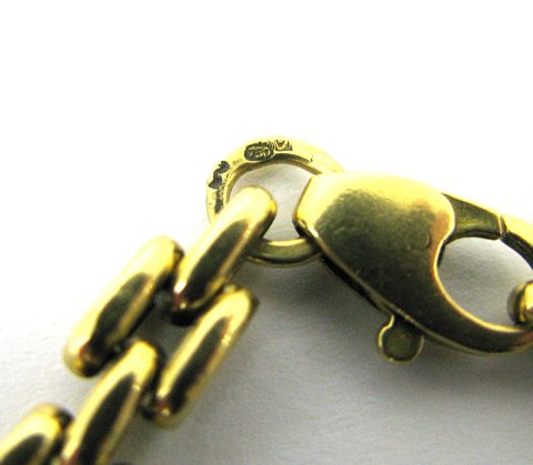 Armlænke af 18 kt. guld, prydet med 4 cabochonslebne smaragder ca. 4 x 7 mm. L. 19 cm, vægt 12,7 gr.