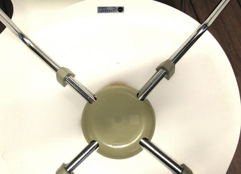 A.J. 4 stk. hvidlakerede syverstole, model nr. 3107, stel af satinforkromet stål. Sæde H. ca. 44 cm. Produceret hos Fritz Hansen.