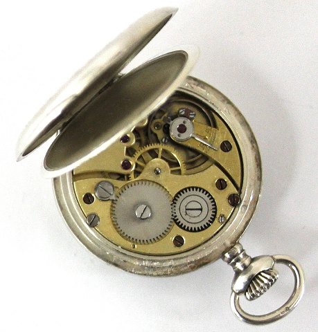 Schweizisk Antoine Fréres pige lommeur i urkasse af sølv. Bagside med gravure i form af dobbeltløve og logo fra den sønderjyske fond. Hvid emailleskive med arabertal. Urkasse diameter 30 mm.