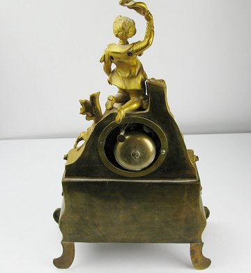 Fransk konsolur af lueforgyldt bronze, prydet med rococodreng og bladværk m.v. Hvid skive med koboltblå romertal og stregindikationer. 8- dages værk med ½ timeslag på udvendig klokke. Penduljustering. H. 38,5 cm. Frankrig, 20. årh. begyndelse.