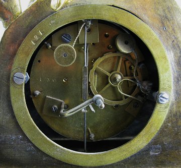 Fransk konsolur af lueforgyldt bronze, prydet med rococodreng og bladværk m.v. Hvid skive med koboltblå romertal og stregindikationer. 8- dages værk med ½ timeslag på udvendig klokke. Penduljustering. H. 38,5 cm. Frankrig, 20. årh. begyndelse.