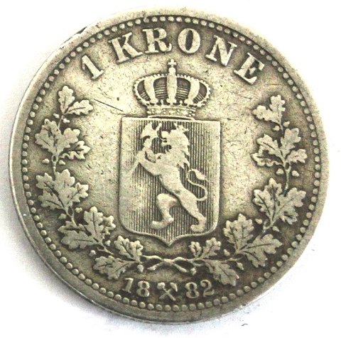 Norge, Oscar II, 1 kr sølv 1882 - KM 357