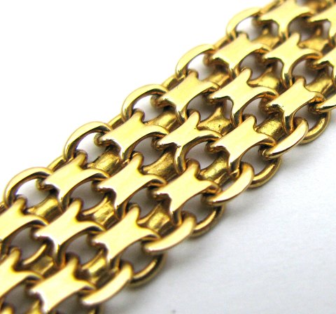 Armlænke af 18 kt guld med flere baner flettede led, L. 18 cm., vægt 26,9 gr.
