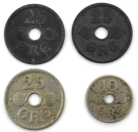 Chr. X, 25 øre og 10 øre 1933, samt 25 øre 1943 og 1945 (4)
