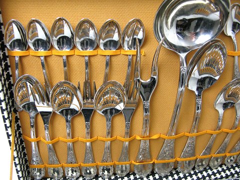 Herskabeligt, italiensk 12 pers. bestiksæt af blankpoleret stål.