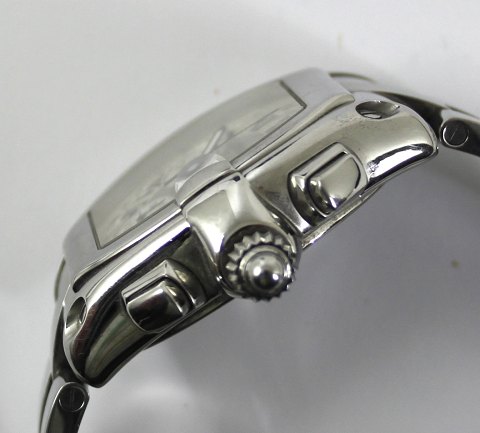 Herrearmbåndsur fra Cartier, model Roadster, ref.nr.: W62019X6, i kasse af stål, lys skive m. både araber- og romertal, chronograffunktion, datoangivelse ved 3" position, monteret m. original lænke i stål, safirglas, automatisk urværk. Ø. 30x38 mm.