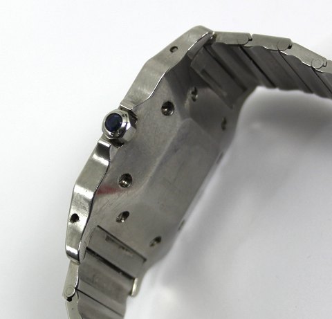 Herrearmbåndsur fra Cartier, model Santos, i kasse og m. lænke af 18 kt. guld og stål, Hvidfarvet skive m. romertal, safirglas, automatisk urværk. Ø. 30 mm. uden krone