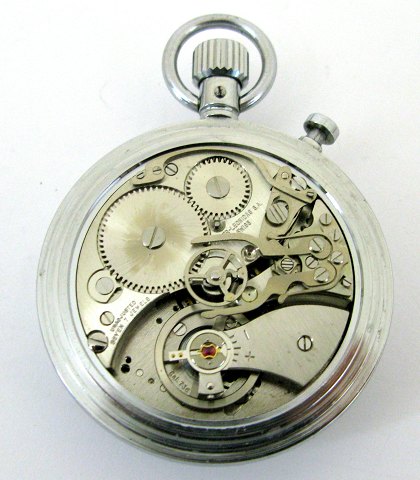 Heuer minut Stopur i urkasse af poleret stål. Stødabsorberende, antimagnetisk værk med kraftig hovedfjeder. Urkasse diameter 51 mm.