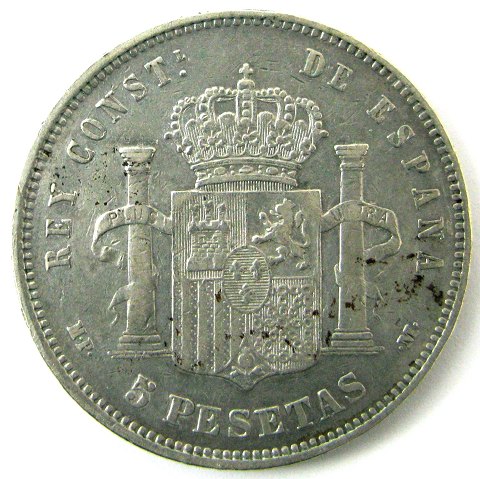 Spanien, Alfonso XIII, 5 Pesetas 1889 (89) sølv - KM 689
