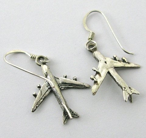 Par ørelokker i form af 4-motorers passagerflyver. L. 18 mm.