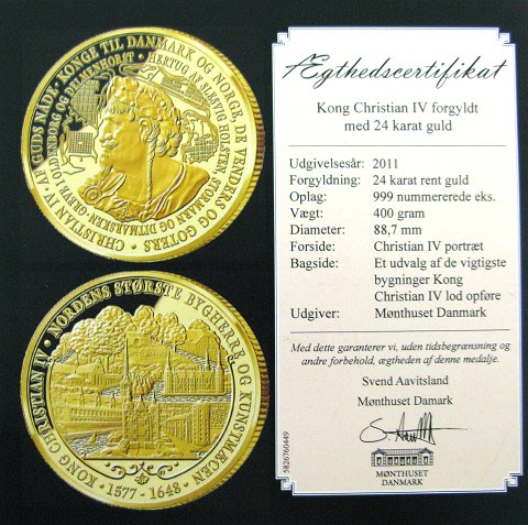 Medaljen er slået for at hædre Christian IV og den naive køber kunne fristes til at tro, at der er tale om sølv - men det forbyder udgivelsesprisen. Der medfølger etui og ægthedscertifikat.