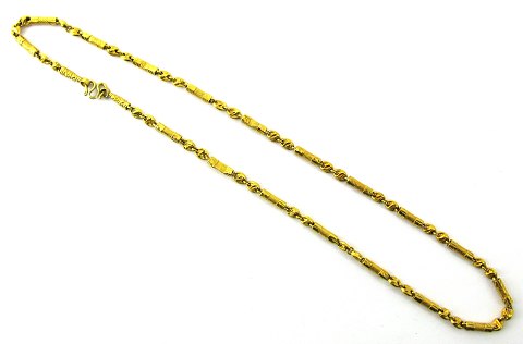 Collier af 18 kt guld (syreprøvet), med cylinderformede led, hvorimellem ovale massive led. Stemplet 900, samlet vægt 45,95 gr.