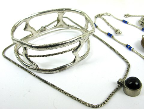 Heriblandt Techau hånsmedet armring, 3 diverse halskæder med vedhæng, armlænke m.v.