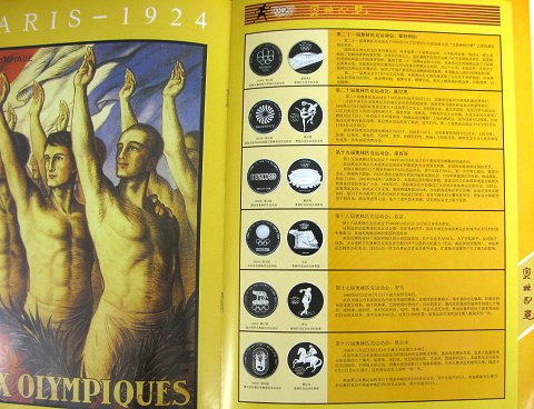 Læderbeklædt trææske med 28 medailler af metal (muligvis forsølvet) med motiver fra de Olympiske Lege gennem tiderne. Alle medailler er afbildet i den medfølgende brochure og beskrevet med kinesiske skrifttegn. Original salgsæske med yderboks medfølger.
