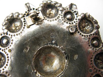 Norsk sølje (folkedragtbroche) af 13 lødigt sølv, bl. a. stemplet H I og 51. Diam. ca. 6,5 cm. Vægt ca. 19,2 gr.