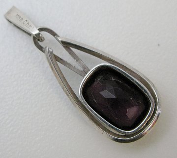 Sølvvedhæng, dekoreret med flot, facetsleben ametyst, L. ca. 28 mm., samlet vægt ca. 3,0 gr.