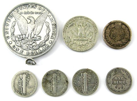 USA, One Dollar 1897, Quarter 1962, 4 stk. One Dime 1909, 2 x 1916, 1941 alle sølv, samt Cent 1863. (7)