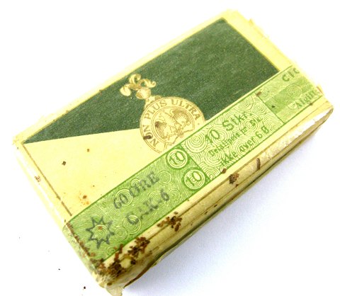 Gl. Pakke Cecil med cigaretter i oval, engelsk form. Banderole med pris på 60 øre intakt. Pakke ca. 45 x 75 mm.