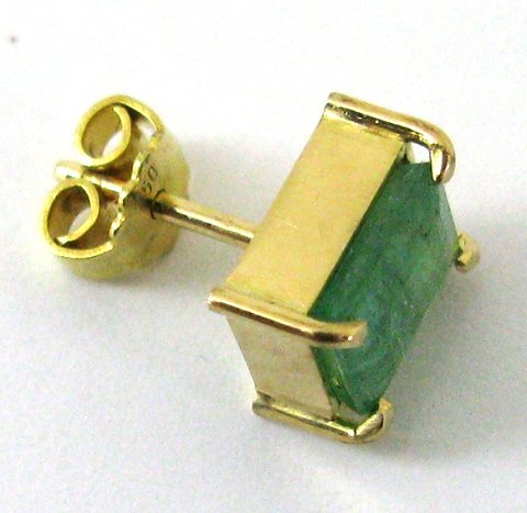 Ørestik af 18 kt. guld i rektangulær fatning, prydet med smaragd 8 x 6 mm., vægt 1,8 gr.