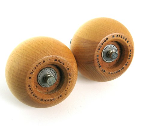 Salt og pebersæt af matpoleret bøgetræ. H. 11,5 cm., ubrugt.