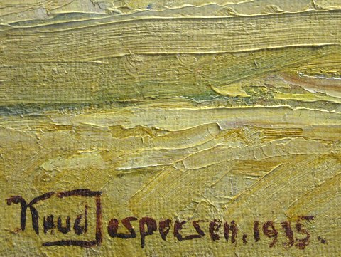 K. Jespersen, signeret og dateret 1935 oliemaleri på lærred med et motiv fra Ebeltoft Vig, 105 x 75 cm.
