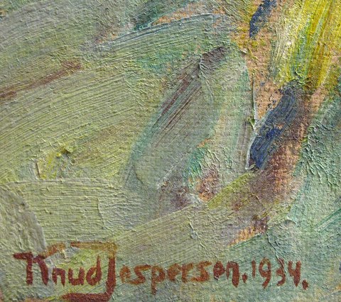 K. Jespersen, signeret og dateret 1934 oliemaleri på lærred med et motiv fra Egsmark, 75x70 cm.