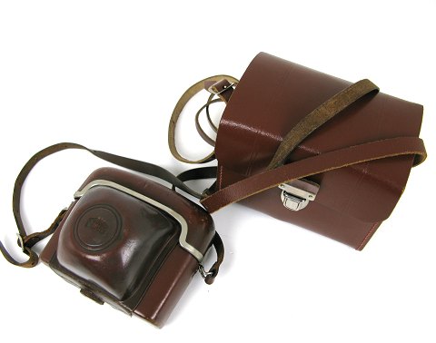 Zeiss Contessa med Prontor 2,8/50 Optik samt Kodak Boxkamera model E. Begge med beredskabstaske læder.