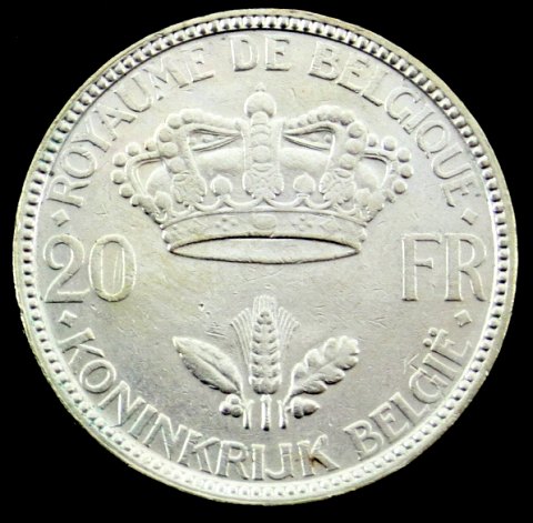 Belgien - Leopold III, 20 Francs 1935 sølv - KM 105