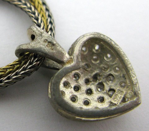 Halssmykke i form af treradet kæde, L. 43 cm. med vedhæng af sterling sølv, besat med talrige sten.