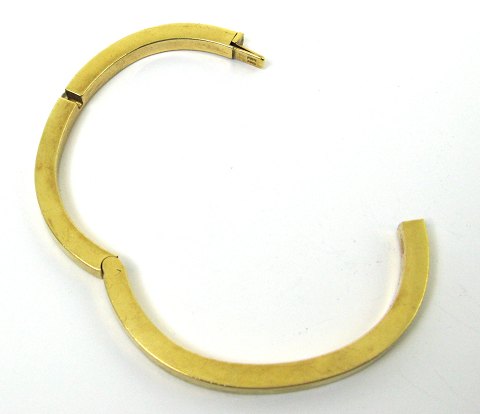 Oval armring af 14 kt. guld, indvendig 61 x 55 mm., prydet med brillantsleben diamant på 0,05 ct., vægt 16,5 gr.