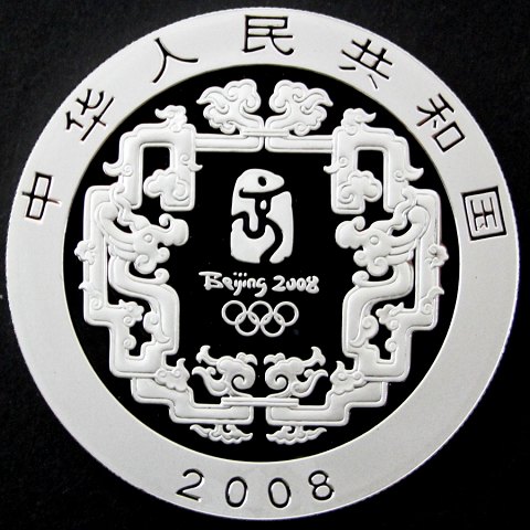 Kina, 10 yuan finsølv 2008 Proof - Beijing 2008, KM 1844