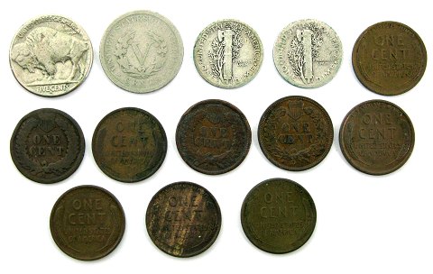 1 cent 1890,1892, 1901,1914,1917,1918,1918,1925S,1952, 5 cent 1899,1916S, 10 cent 1917,1919S