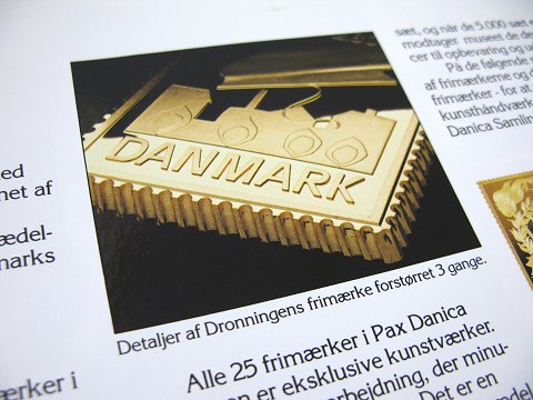 Pax Danica Samlingen, sæt på 25 frimærker af forgyldt sølv i originalstørrelse, monteret i display æske med nøglelås. Oversigtskort og autentisitetsattest medfølger.