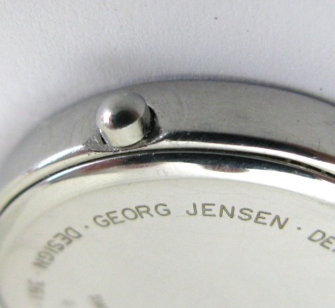 Klassisk Georg Jensen herrearmbåndsur, dessin 361 i urkasse af stål. Hvid skive med romertal og central sekundviser. Quartsværk, urkasse diameter 34 mm. Ingen rem.