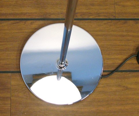Poul Henningsen, PH 3½ / 2½ gulvlampe med skærme af mundblæst, hvidt, opalt glas med stander og fod af højglansforkromet messing og stål. Overskærm diameter 33 cm., H. 130 cm. Fatning med E 27 sokkel, max 100W.