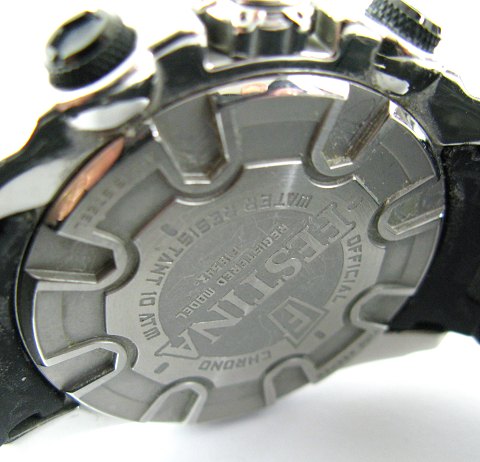 Festina chronograph herrearmbåndsur i urkasse af stål og lænke af sort gummi med metalspænde. Sort struktureret skive med separat sekundviser, stregindikation, datovisning i #3 positionen med forstørrelsesboble, chronograph funktioner. Quartsværk. Urkasse diameter 46 mm.