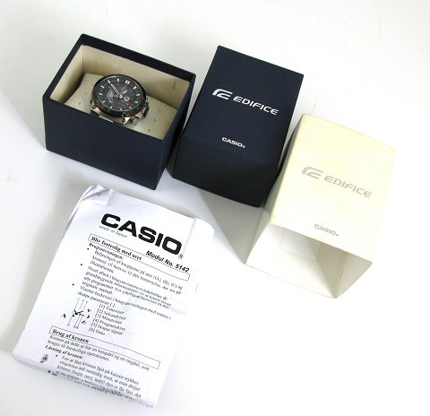 Casio Wave Ceptor herrearmbåndsur, ref. EQW N000DB i urkasse og med lænke af stål. Sort skive med stregindikation, central sekundviser og chronograph funktioner. Quartsværk. Urkasse diameter 42 mm. Salgsæske, manualer og certifikat fra 09/2012 medfølger.