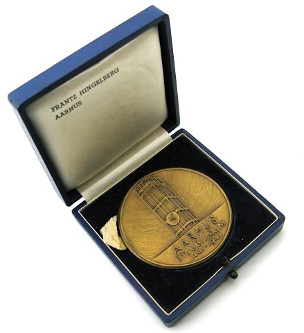 Frantz Hingelberg, medaille præget i anledning af Aarhus' 500 års byjubilæum samt Rådhusindvielse den 2. juli 1941. Medaille diameter 56 mm.