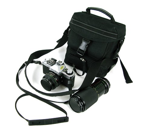 Minolta XG 1 kamera med 49/50 mm. Kenlock optik og 52 mm. telelinse 80/200 mm. Fototaske medfølger.