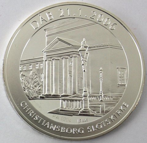 Medaille af sterling sølv, præget i anledning af Prins Christian's dåb 21.01.2006. Diameter 40 mm., vægt 24 gr. Begrænset oplag til max. 5000 stk.