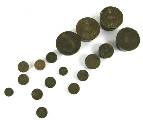 4x 200 gr., 2x 50 gr., 9 x 20 gr. og 2x 10 gr.