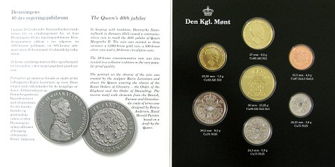 Møntsættet indeholder: 50 øre, 1, 2, 5, 10 og 20 kr samt medaille hvor bagsiden visen en medaille, der er præget med Christian X monogram som blev brugt i perioden 1912-47, mens forsiden viser et hjerte under en krone.