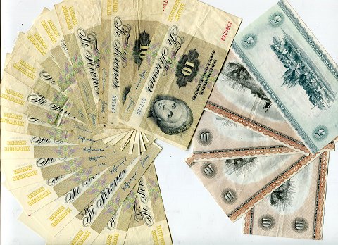Danmark, samling sedler 5 kr og 10 kr (20)