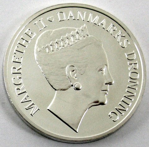 Præget i anledning af HM Dronning Margrethes 70 års fødselsdag den 16. april 2010. Avers Dronningens portræt udformet af billedhuggeren Lis Nogel - Revers designet af kgl. våbenmaler Ronny Andersen.
